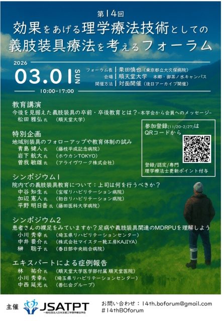 2026年3月1日(日)に開催されます「第14回 効果をあげる理学療法技術としての義肢装具療法を考えるフォーラム」において、弊社代表の中井が、シンポジウム2「患者さんの裸足をみていますか?足病や義肢装具関連のMDRPUを理解しよう」にシンポジストとして登壇いたします。